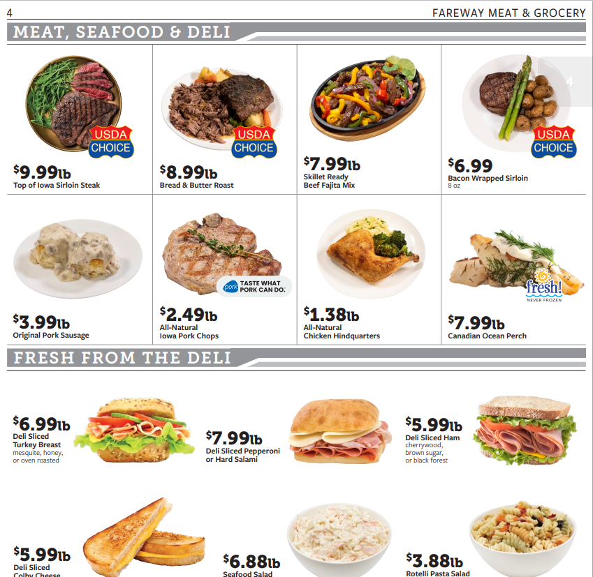 Shoppers can preview next week’s sales by section. From tender cuts of beef and chicken, to farm-fresh fruits and vegetables, and baked goods for every meal, the Fareway Weekly Ad shows you what’s on the way.
